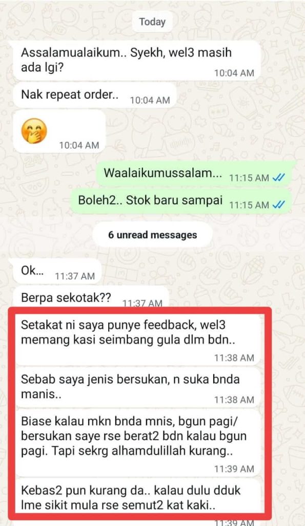 *PENAFIAN: Keberkesanan produk ini bergantung kepada kesesuaian individu. Setiap hasil dari penggunaan adalah berbeza bagi setiap individu. Produk ini akan memberi kesan terbaik sekiranya pengguna mengamalkan dengan cara betul berdasarkan banyak testimoni yang diperolehi. Kita berikhtiar, tuhan yang menyembuhkan.